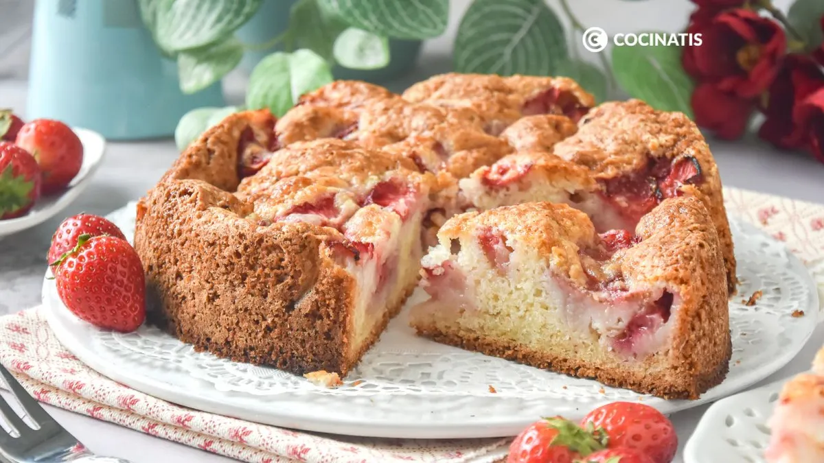 Si como a nosotras os encantan los postres con fresas, este bizcocho se convertirá en uno de vuestros favoritos. ¡Estamos seguras!