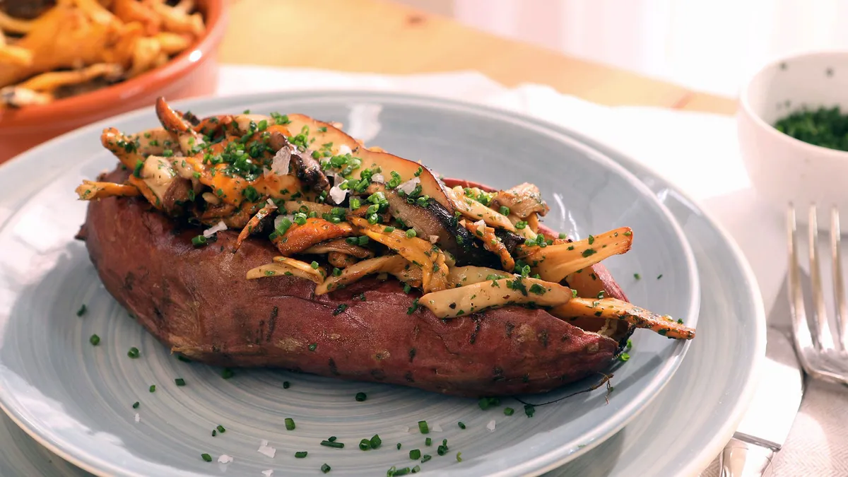 Aprende a elaborar esta receta de boniatos al horno rellenos de setas, un plato de temporada para sorprender a tus invitados.