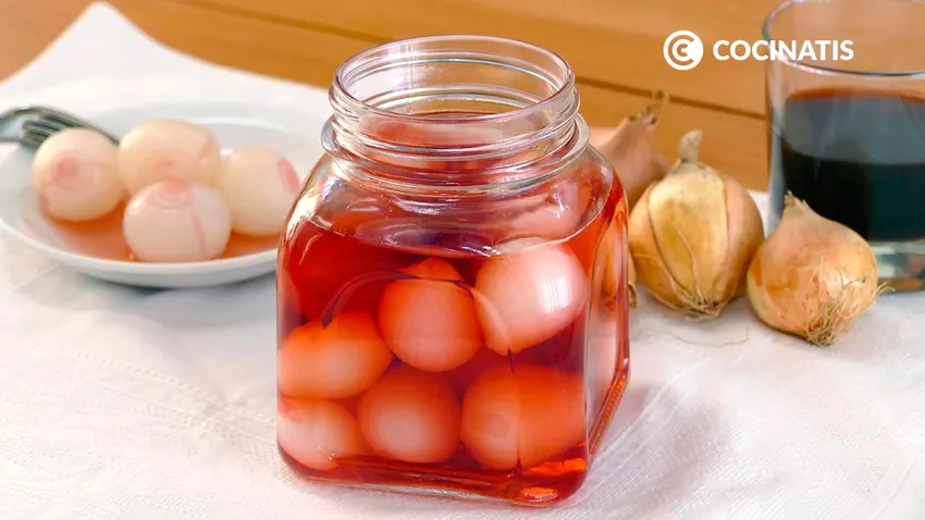 Prepara las cebolletas encurtidas con esta receta tan fácil en la que preparamos una mezcla de vinagre de vino tinto, granadina y agua para hacer el clásico aperitivo en casa.