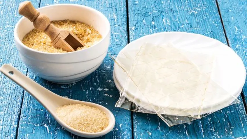 Para hidratar la gelatina en láminas, deja las láminas de gelatina en remojo en agua fría durante 5 minutos.