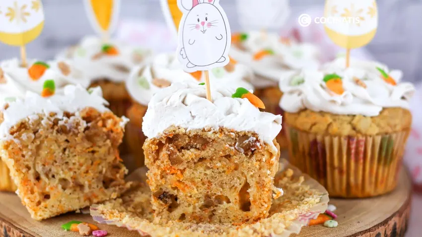 Preparamos unos de nuestros cupcakes favoritos, ¡los de zanahoria! Añadimos, además, nueces a la masa y los acompañamos por un dulce frosting como en el pastel de zanahoria original.