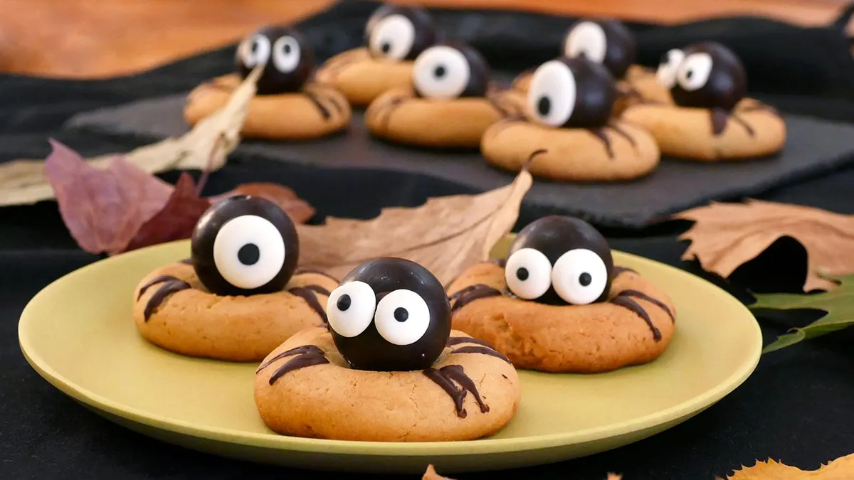 Crea divertidas galletas araña con bombones y celebra Halloween de manera original con una receta que triunfará entre pequeños y mayores.