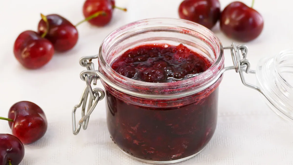 Puedes servir la mermelada de cereza acompañada de tostadas de pan, ideal para desayunar.