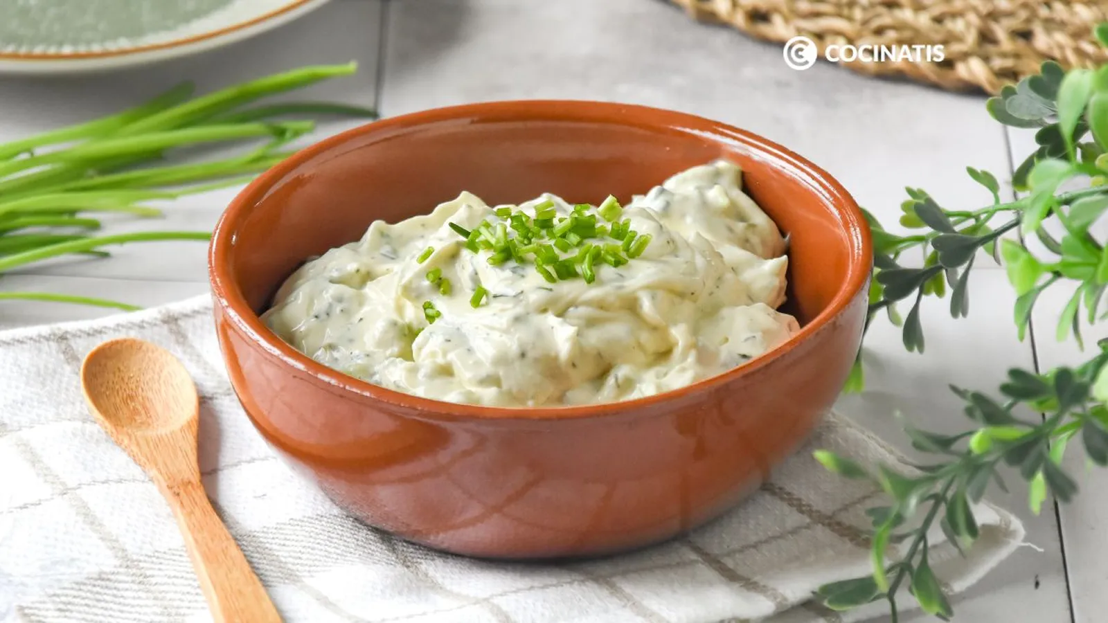 Se trata de una salsa cremosa con una base de mayonesa y crema agria, que se puede sustituir por yogur griego con un poco de zumo de limón y aderezada con diferentes hierbas aromáticas.