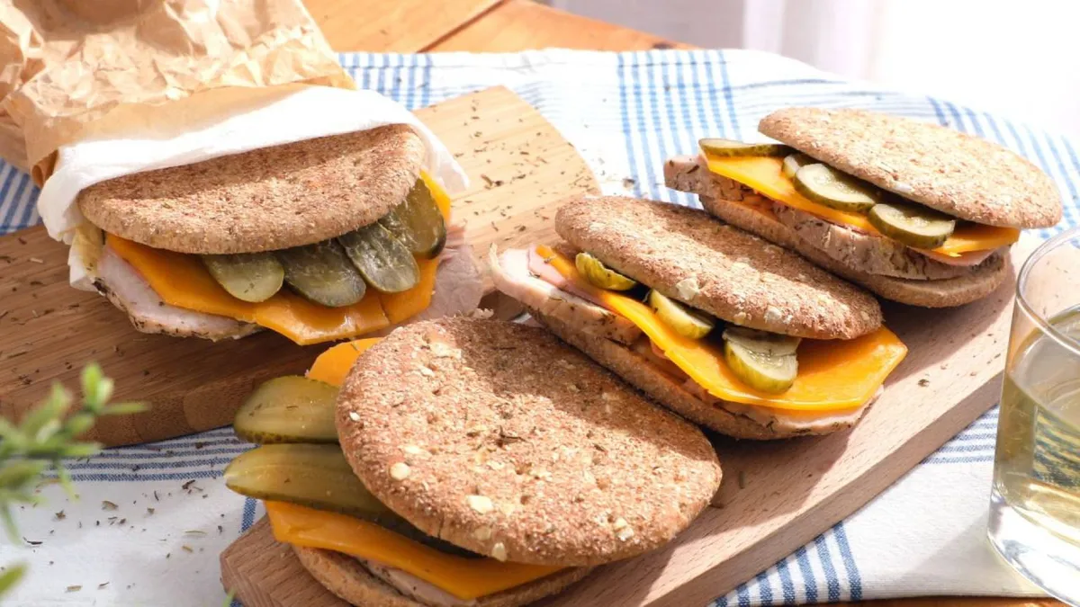 Para montar el sándwich cubano, unta una rebanada de pan con mostaza. Coloca sobre la mostaza unas 2 lonchas de lomo asado y encima una loncha de jamón cocido. Después, añade una loncha de queso y encima unas rodajas finas de pepinillo. Unta otra rebanada de pan con mostaza y tapa el sándwich. Monta todos los sándwiches del mismo modo.