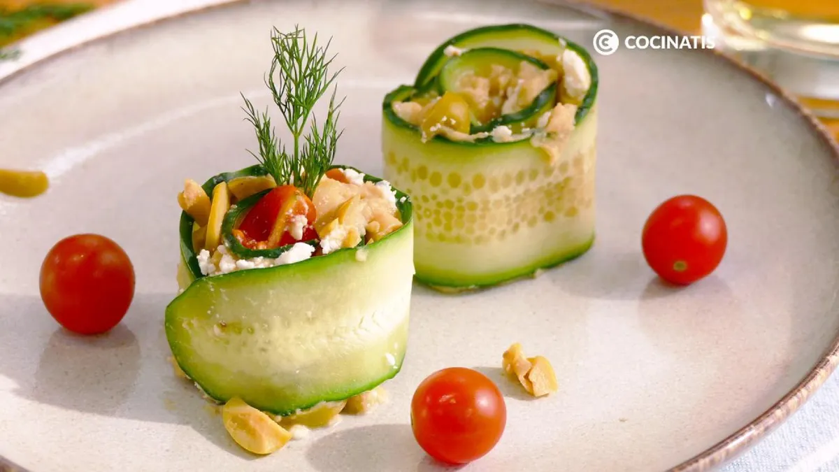 Enrolla las láminas de pepino con el relleno.