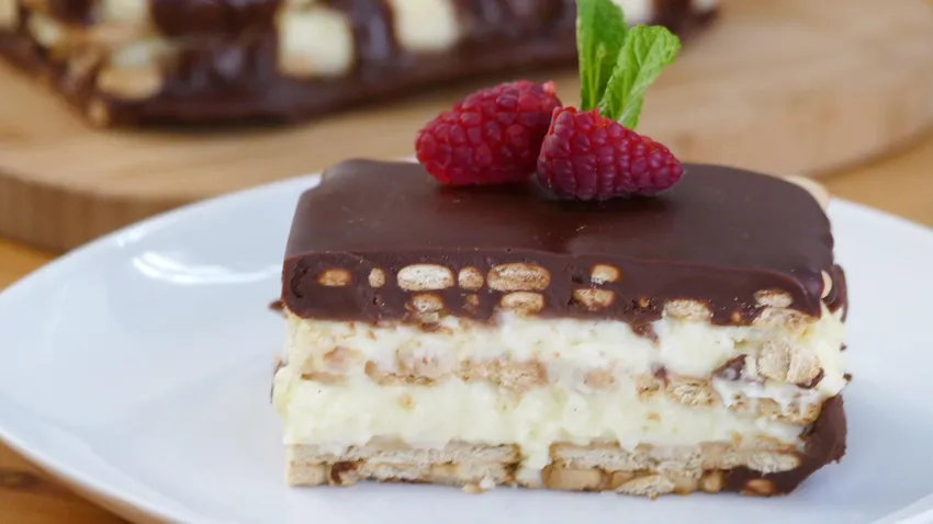 Tarta de la abuela ¡la receta tradicional de galleta, crema pastelera y chocolate!