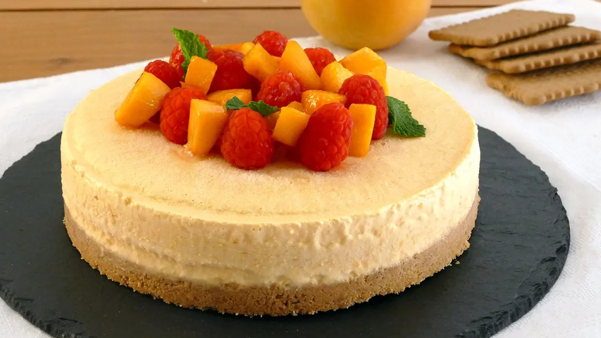 Tarta fría de queso y melocotón