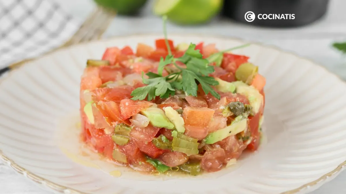 Este tartar de tomate fresquito para la temporada de verano esta delicioso, es sencillo de preparar y resulta perfecto como entrante para cualquier ocasión.